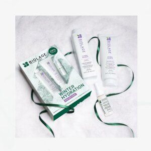 Hydrate dry hair with Biolage Hydra Source Holiday Kit. This limited-edition kit cleanses and restores moisture. Complete with the Strength Repairing Spray to protect hair from heat and mechanical damage, leaving dry hair stronger, smoother and softer.