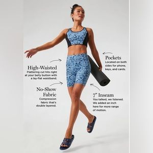 From beachside bike rides to serving on the courts, the Hydrangea 7 Inch Compression Bike Short is the most versatile piece in the collection. Pair with the matching sports bra or throw under your tennis and golf dresses for a cheeky pop of print that is sure to bring a smile to those who catch it. With the same fit as the high-rise leggings, these quick-dry, wicking property shorts feature tech pockets on both sides as well as flat, locked seams to make them as functional as they are fun.
