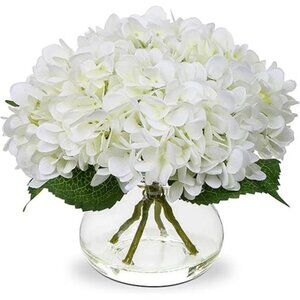 Hydrangea Artificial Flowers with Vase White Silk Fake Flowers Arrangements