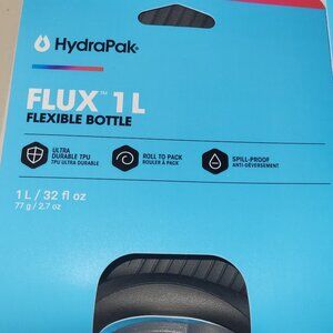 Flexible bottles get an upgrade. The Flux is shaped like a hard bottle, compresses like a softflask, and cuts weight by 50%. Topped with a dust cover and twist-drink nozzle for grab-and-go hydration, plus a bail handle to keep hydration secure in your hand or on your pack. The Flux stands upright like a hard bottle but when you finish your drink, this bottle packs down to pocket size.