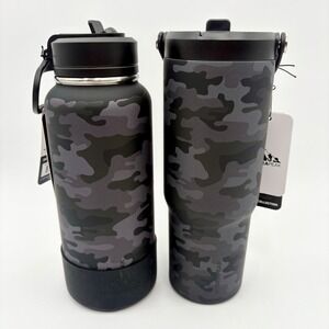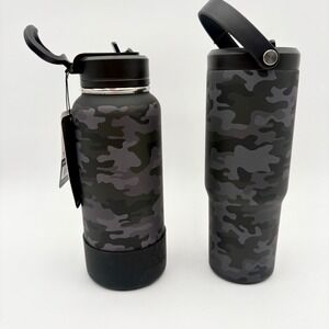 Hydrapeak 32 oz Water Bottle & 32 oz Tumbler Black Camo Stainless Steel Set