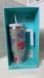 Limited edition Hydrapeak tumbler with sparkling heart design. Features purple and red heart patterns. Comes with a grey-lavender handle and straw.