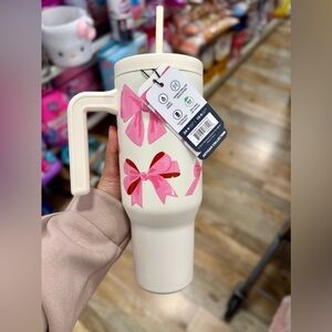 Hydrapeak White Pink Bow Coquette Insulated Water Bottle Tumbler Straw 40 oz