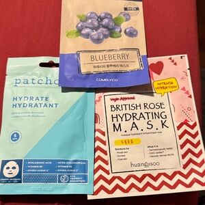 Set of hydrating face masks including blueberry and rose variants. Perfect for intense hydration.