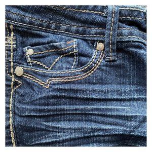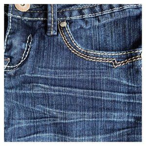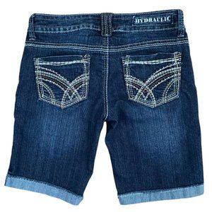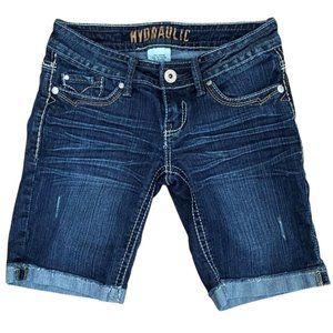 Hydraulic Fringe Cuff Distressed Stretch Ornate Stitch Jean Shorts Size 3 / 4