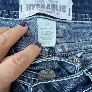 Hydraulic Gramercy women’s size 12 Capri jeans. Light wash, distressed., has rhinestones & thick stitching. Somewhat stretchy.