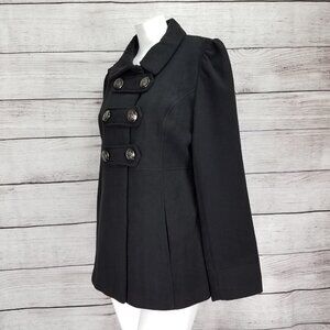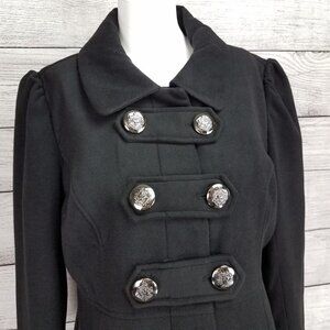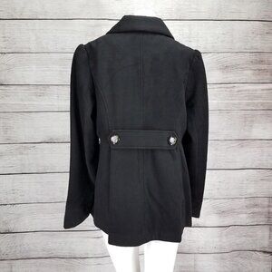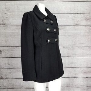 Hydraulic Junior's L Military Style Pea Coat Double Breasted Button Front Black