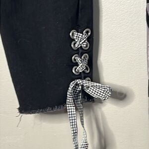 measures approximately 34 inches at the waist with an inseam of 25 inches and a rise of 10 inches