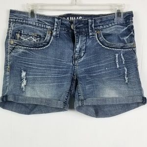 Hydraulic shorts in very good condition no stains, rips, or tears. They are factory distressed.