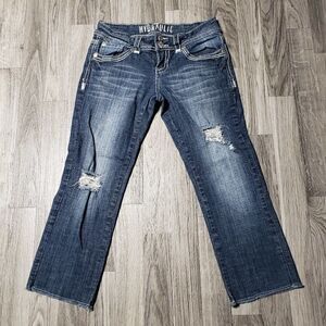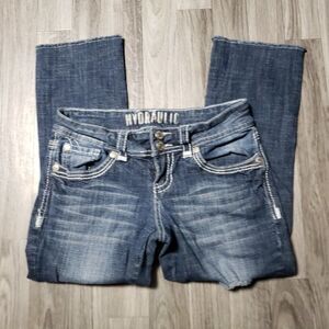 Hydraulic Womens Size 3 / 4 Distressed Embroidered Cropped Denim Blue Jeans