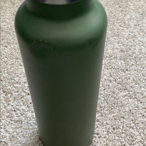 Army green Hydro Flask. There is no lid and there are dents along the top with some scratches on the bottom. All of that is factored into the price.