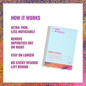 Features: Ultra-thin, non-sticky patches designed to conceal blemishes while working to absorb impurities. Perfect for covering blackheads and whiteheads, and can be layered under makeup for a seamless look. Suitable for all skin types — gentle but effective. The patches work overnight or during the day to help clarify your skin and reduce stubborn spots.