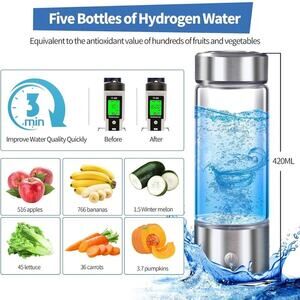 3-Minute-Advanced Electrolysis Technology:Empowered by pioneering SPE and PEM electrolysis technology, this hydrogen water bottles swiftly enriches your water with up to 1600 ppb of hydrogen ions in just 3 minutes. The efficient electrolysis process of hydrogen water machine is not only elevates your hydration experience but also bolsters the water's natural antioxidative properties, potentially contributing to a boosted metabolism, heightened energy, and comprehensive health support.