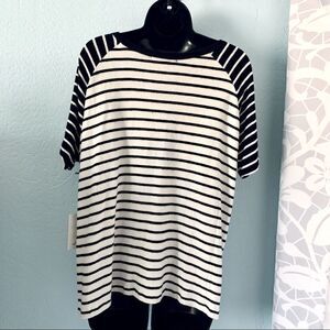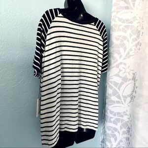 Cute super soft & plush black & white short sleeve sweater top. High-low split side hem. Polyester/rayon/spandex fabric. NWT. Hye Park and Lune Size 1