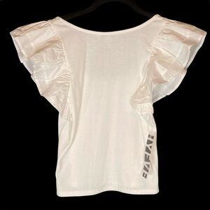 Elevate your wardrobe with this elegant white top from . Featuring stylish ruffle sleeves, it's perfect for any occasion.