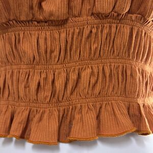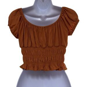 Hyfve Womens Medium Orange Brown Ruched Puff Sleeve Cropped Top Boho Cottage