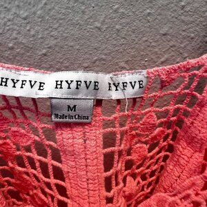 keywords: Pink crochet tank top, boho lace tank, summer crochet top, Hyfve women's top, pink bohemian tank, lace spaghetti top, crochet pink blouse, lace detail tank, boho chic pink top, women's medium crochet, lightweight summer top, spaghetti strap lace, pink tank top medium, boho style top, beach wear