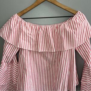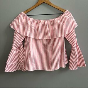 Hyfve Pink Striped Ruffle Off the Shoulder Top Long Bell Sleeve Shirt Size Small