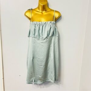 Hyfve Satin Slip Dress Large Light Blue Ruffle Top Spaghetti Strap Midi Trendy
