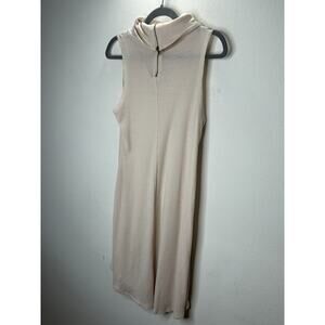 Hyfve Soft Cream Mock Neck Sleeveless Rib Knit Faux Asymmetrical Back Zip Dress