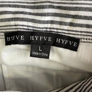 Hyfve striped skirt Length - 25” Waist flat measurement- 15” Side zipper Faux button details Matching removable belt Front Pockets