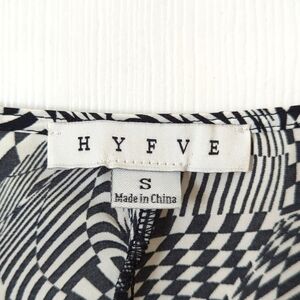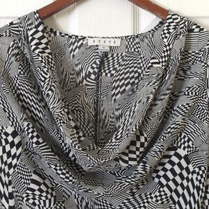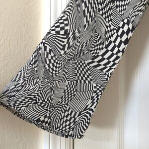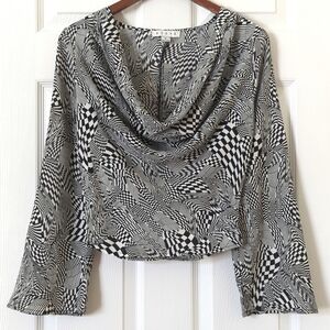 Hyfve Trippy Wavy Checkered Cowl Neck Flared Sleeve Cropped Top Black White S