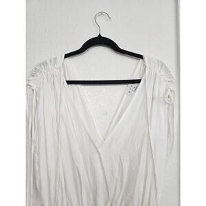 Hyfve White Romper Ruched Shoulders Tassel Ties Pockets Lined V-Neck Boho Chic M