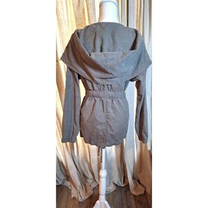 Hyfve Womens Faux Suede Hooded Jacket Olive Green Shawl Collar