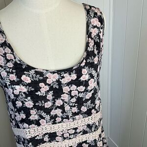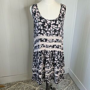 Hyku Womens Size Large Inside Outside Mini Tank Dress Black Pink Floral Flowy