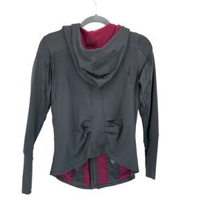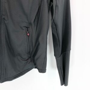 Hylete Jacket Womens Medium Gray Red Full Zip Hooded Thumb Holes Workout Gym