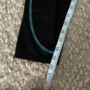 Description: Basic black cropped leggings with teal stitching.