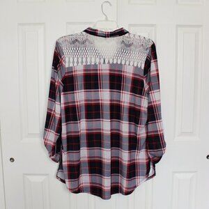 Hype Button Down Lace Panel Long Sleeve Top Size 3X