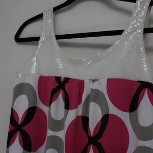 Hype dress in good condition! Has a white sequined strap area. The dress is white with pink and gray details. The bottom is gathered in an elastic making it bubbled.