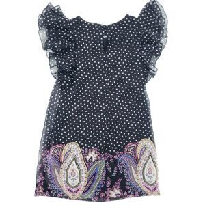 Hype Girls Polkadot Flutter Sleeve Paisley Summer Dress SZ 7 Black, Pink, White
