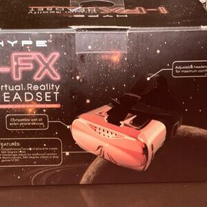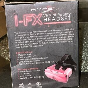 Hype I-FX Virtual Reality Headset Compatible with all smart phone devicesAdjustable head strapUtilizes your phone motion sensor for 360 degree viewsMade of High Strength ABS Lens is made of high grade resinLens diameter is 42mmPupil Adjustment distance is 58-72mmNEW in boxPhone not included