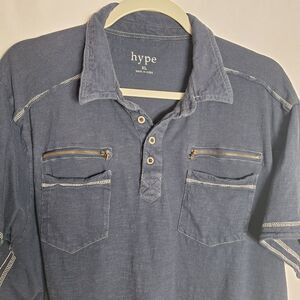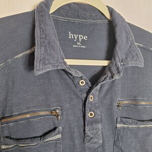 Hype Mens Dark Blue Polo Shirt Front Pockets Cotton Casual Streetwear XL