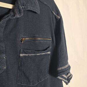 Stylish dark blue polo with zippered pockets. Comfortable and versatile for any occasion. Everyday Normcore, Business Casual