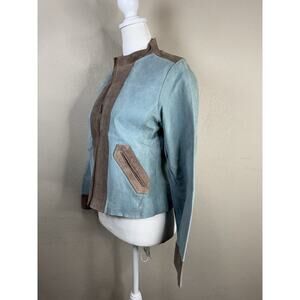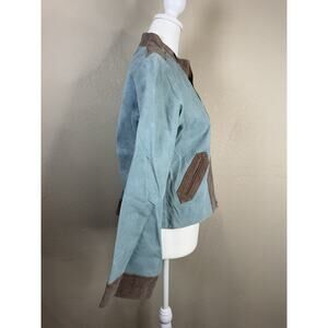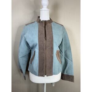 ype Women’s 16 Genuine Suede Leather Jacket Blue Brown Zip Moto Biker Style Vintage Y2K Western Vibes