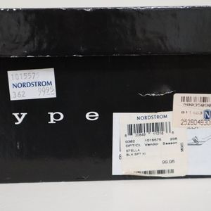 Sexy black mules with smoke colored metal buckle accent. Low kitten, leather stacks heel is sexy, yet comfortable. White stitching along base.
