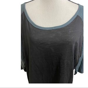 Hype sheer black green baseball top 3X round collar long sleeves. Plus size.