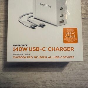 Hyper 140W USB-C Charger for MacBook Pro 16". Includes USB-C cable. Compatible with all USB-C devices.