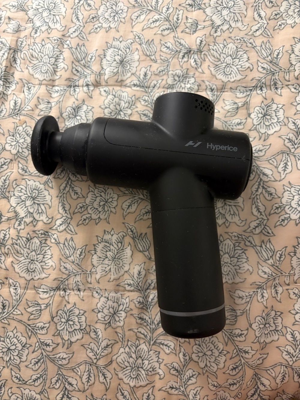 black massage gun delivers targeted percussion therapy for muscle recovery. Compact and lightweight for easy handling. Quiet motor and ergonomic grip for comfortable use. Includes a removable massage head for customizable treatments.