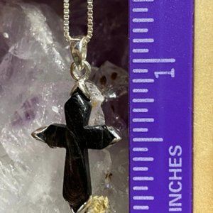 This listing is for one Hypersthene 925 Sterling Silver cross pendant with a sterling silver box chain.