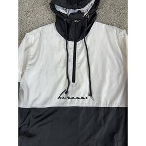 Hypland Burassi Jacket Mens XL Black White Hooded Half Zip Pullover Windbreaker