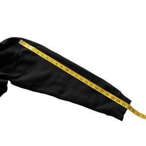 The left sleeve has a very, very small paint (?) mark. See the last picture. Otherwise, no stains, no holes. No fading of the black color. The graphics are in great condition.