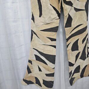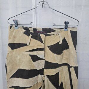 Hypoactive Tan Brown Patchwork Suede Flare Pants Hippie Boho 8 FLAWED