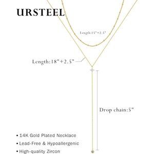 Features: This beautiful layered lariat necklace is crafted with tiny charms and a sleek, modern design. Made with 14k-gold-plated brass, it's waterproof, hypoallergenic, and perfect for sensitive skin. No clasp, with a link chain that easily adjusts for a comfy fit. Great for dressing up everyday or for special occasions—think parties, dates, weddings, or gift-giving.