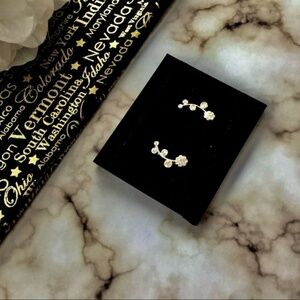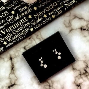 Features a flower positioned at the pierced portion of the ear. These earrings "climb" right up your ear. Trendy earrings can be worn in your first or second hole.