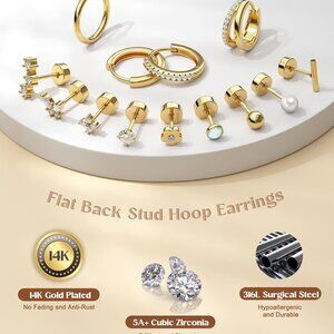 Hypoallergenic Flat Back Earrings — Versatile pack with 14 pairs of chic studs and gold hoops.