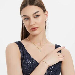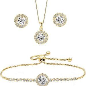 Hypoallergenic Round Cubic Zirconia Earrings Necklace Bracelet Set Prom Party